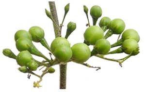 ritualistic herb for its hallucinogenic effects. In Nigeria, decoction of leaves or fruits added to drinks to achieve a "high," as a substitute for marijuana. It has been reported that the Moros intoxicated themselves with the plant before committing their massacres. (•) Its psychoactive properties have also found use in witchcraft and sorcery.