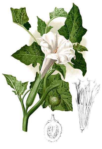 • Datura species have long been used as poison and hallucinogen. Its psychoactive properties have found use in witchcraft and sorcery; some species used ritualistically as entheogens by some Native American groups. (41)