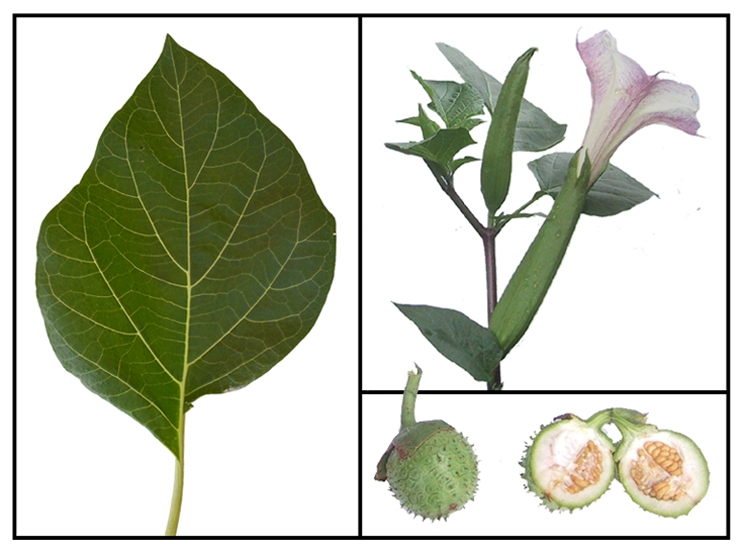 • Mineral Composition / Phytomonitor Potential: Study evaluated the mineral compositions of leaf, seed, and flower of D. metel. Results yielded 12 elements including Cu, Co, Ni, Mn, Zn, Fe, Na, K, Ca, Mg, P, and Al. Leaves were minerally richer than seed and flower counterparts. Datura metel was found tolerant for Co and Ni and may be used as phytomonitor for these elements in the soil. (27)