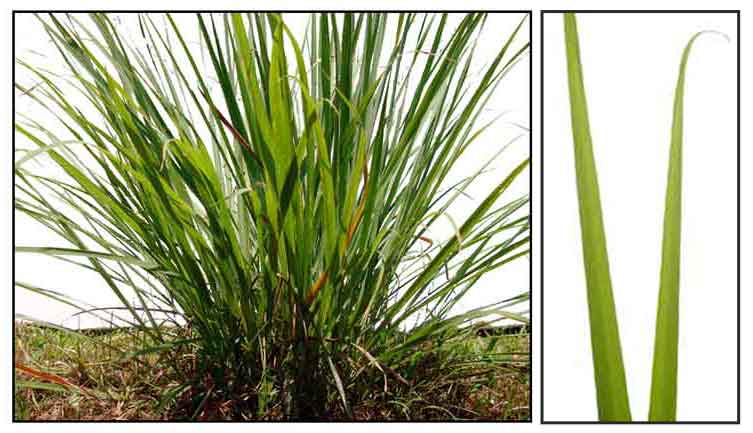 • Growth form: Clump-forming grass up to 1.2 m tall or 2m tall when in flower. Foliage: Leaf blades are light green and strap-shaped (up to 0.9 m long, 2.5 cm wide). Crushed leaves exude a lemony scent. Stems: A pseudostem formed from tightly-overlapping leaf sheaths on non-flowering shoots is 12-25 cm long and 1-2 cm across, bulbous and thickening towards base of plant. It is fragrant when crushed and yellowish-brown or reddish. Flowers: Numerous brownish florets held on compound drooping panicles up to 0.5 m across, rarely produced in cultivation. Fruit: Spikelets with hairy awns, rarely observed. (FLORA & FAUNA WEB)