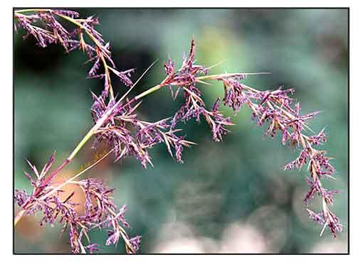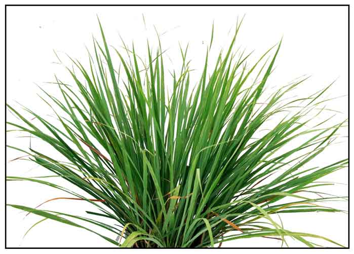 • Growth form: Clump-forming grass up to 1.2 m tall or 2m tall when in flower. Foliage: Leaf blades are light green and strap-shaped (up to 0.9 m long, 2.5 cm wide). Crushed leaves exude a lemony scent. Stems: A pseudostem formed from tightly-overlapping leaf sheaths on non-flowering shoots is 12-25 cm long and 1-2 cm across, bulbous and thickening towards base of plant. It is fragrant when crushed and yellowish-brown or reddish. Flowers: Numerous brownish florets held on compound drooping panicles up to 0.5 m across, rarely produced in cultivation. Fruit: Spikelets with hairy awns, rarely observed. (FLORA & FAUNA WEB)