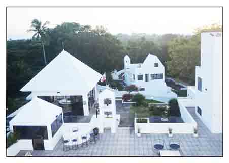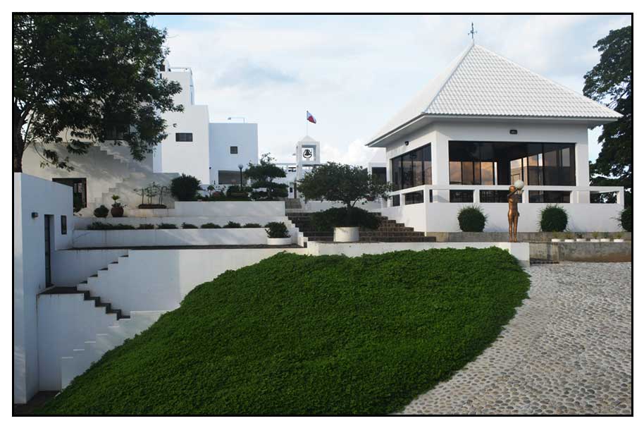 Located at the peak of a burol in barangay Lumingon, the White House at Pulang Lupa is an on-going 20-year long construction project. What started in April 1998 as a dream of a one-room school house and village library has burgeoned into a complex of buildings with six guest rooms, a pavilion, a library, a chapel, an outdoor theatre that sits over 200, an art gallery and scattering of outdoor sculptures, spacious courtyards, and view decks galore. It towers over the town of Tiaong, feasting on the wonders and whims of nature: the grand vistas of the verdant countryside and circle of mountains, the capricious peaks of Cristobal and Banahaw that awakens suffused with the colors of sunrise breaking through the morning mists, and the Ayusan mountains sometimes awash with the palette of sunset colors, the seasonal rainbows, and the celestial night skies.
