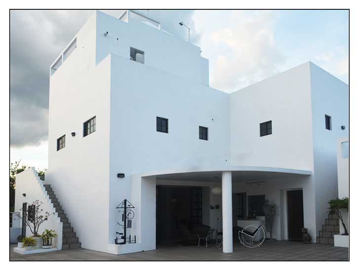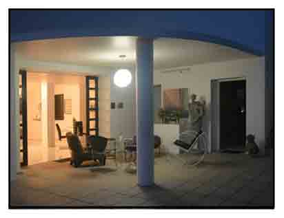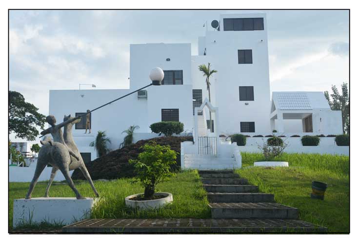 The buildings, the landscaping, and the interior decorating. The obsessive-compulsive efforts on designing, symmetry, balance, and flow. The painstaking connection of interiors and exterior, and, whenever possible, a picture window to the view I live in Art—The White House is the opus, vessel for the accumulation of artwork that hangs in its white walls, inside and outside, the grounds scattered with sculpture. The art, some from way back Baltimore, many done in the last ten years. Having a mason and a welder at hand has greatly facilitated putting creative ideas and sudden flashes of inspirations into fruition. Many of the artwork material are rescued junk: thrashed wood and scrapped metal. A defunct generator, old metal grill fence works from the ancestral house, and countless junkyard foraging have provided for much of the metal sculpture.