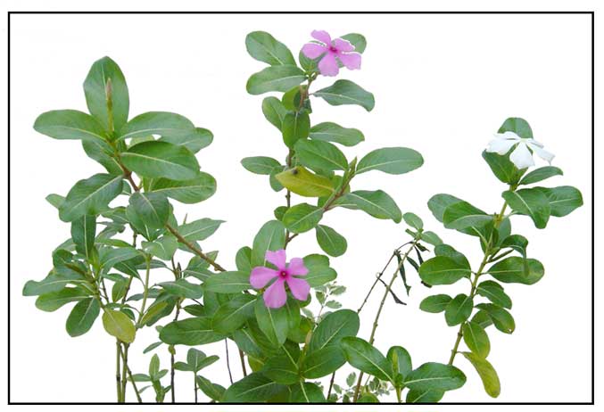 • Peroxidase and Biosynthesis of Terpenoid Indole Alkaloids / Leaves: The first natural drugs used in cancer therapy—the dimeric terpenoid indole alkaloids vinblastine and vincristine—were produced from the leaves of C. roseus. This study isolated two other terpenoid indole alkaloids: ajmalicine, used as antihypertensive, and serpentine, used as sedative. Study present an overview of the class III plant peroxidases in the biosynthesis of terpenoid indole alkaloids in C. roseus. (44)