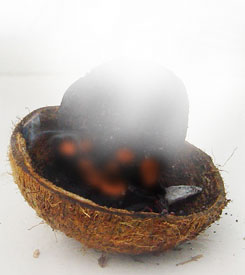 Another remedy is the burning of a clump of wet earth, preferably taken from the "punso" (a mound of earth believed to be habited by thenuno, actually a termite mound) and placed on a half of a coconut shell, which is placed on a fire and heated to the point of embers. The embered earth is then doused with water to create the cloud of smoke which is made to engulf the patient. The use of the smoke is similar to that in "suob." Failure of the verbal antidote and
