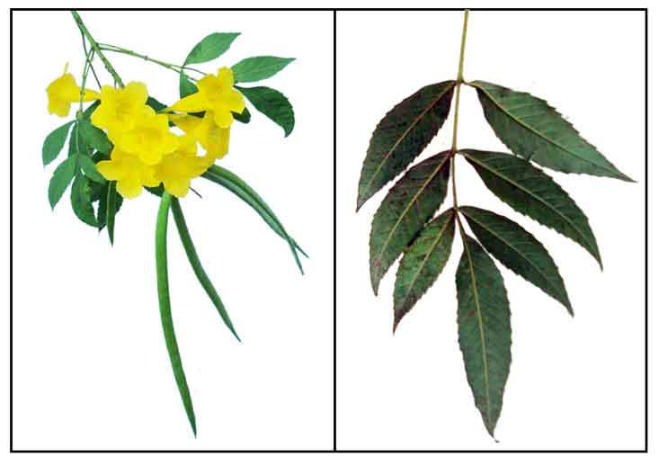 • Antioxidant / Antibacterial / Leaves: Study evaluated methanol, EtOAc and CHCl3 extracts of leaves and branches of T. stans for antibacterial and antioxidant potential. The extracts exhibited significant activity against the test bacteria i.e., B. subtilis, M. luteus, S. lutea, S. aureus, E. coli, S. marcescens, S. typhi. P. vulgaris and P. aeruginosa. The ME showed highest total phenolics (50.3 ± 3.0 mg GAE/g extract) and flavonoids (40.66 ± 5.03 mg catechin equivalents/g extract. An EtOAc fraction of leaves and branches showed highest antioxidant activity (%) with 83.4 ± 0.31 and 82.06 ± 0.54 %, respectively. (27)