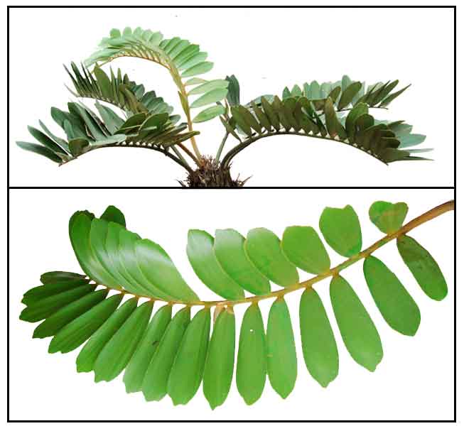 with simple, sometimes branched, short trunk. Leaves are pinnately compound,